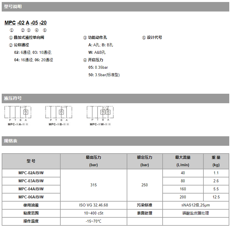 MPC 疊加式液控單向閥